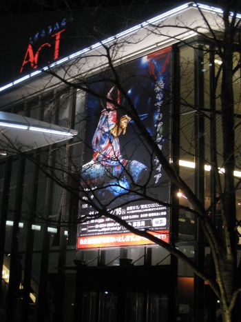 例の映像が映る階段をあがって、とりあえず「夜会」の大看板を撮る。(そういえば前回は無かったので復活)