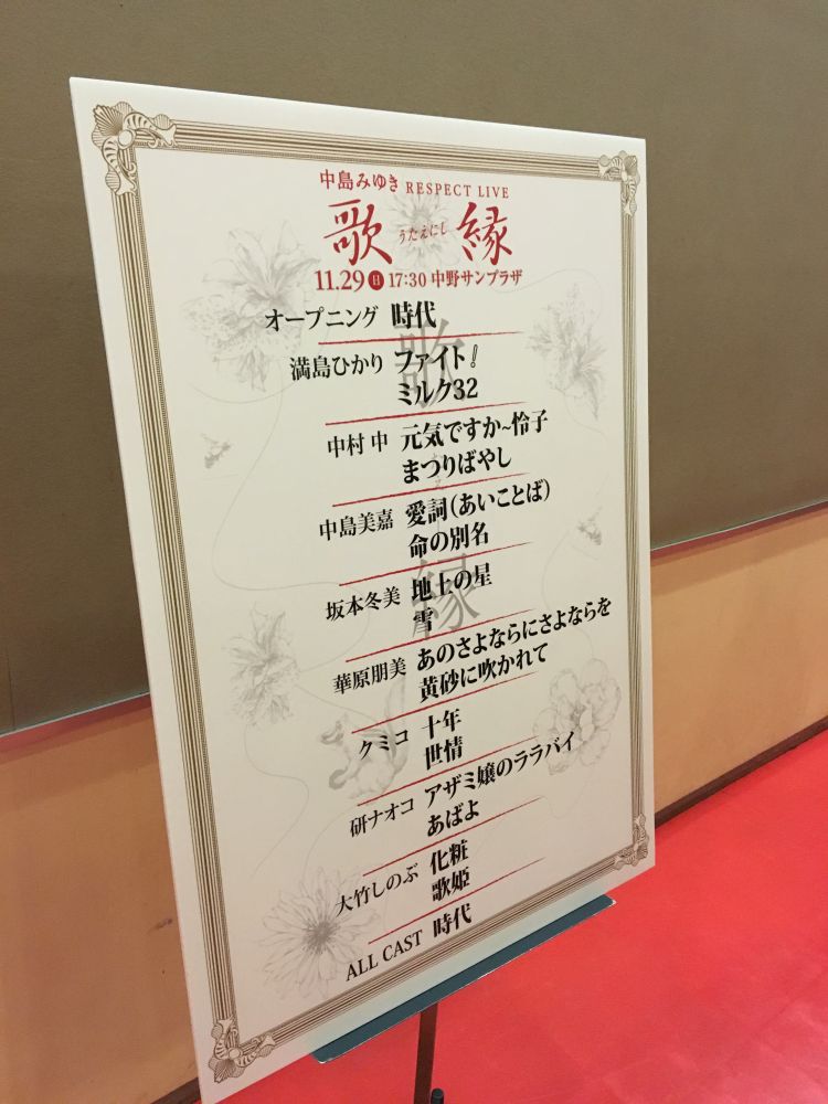 中島みゆき RESPECT LIVE「歌縁」@中野サンプラザ