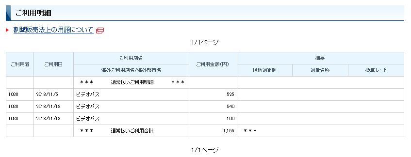 さらにビデオパスの購入履歴を確認してみた。(下画像参照)